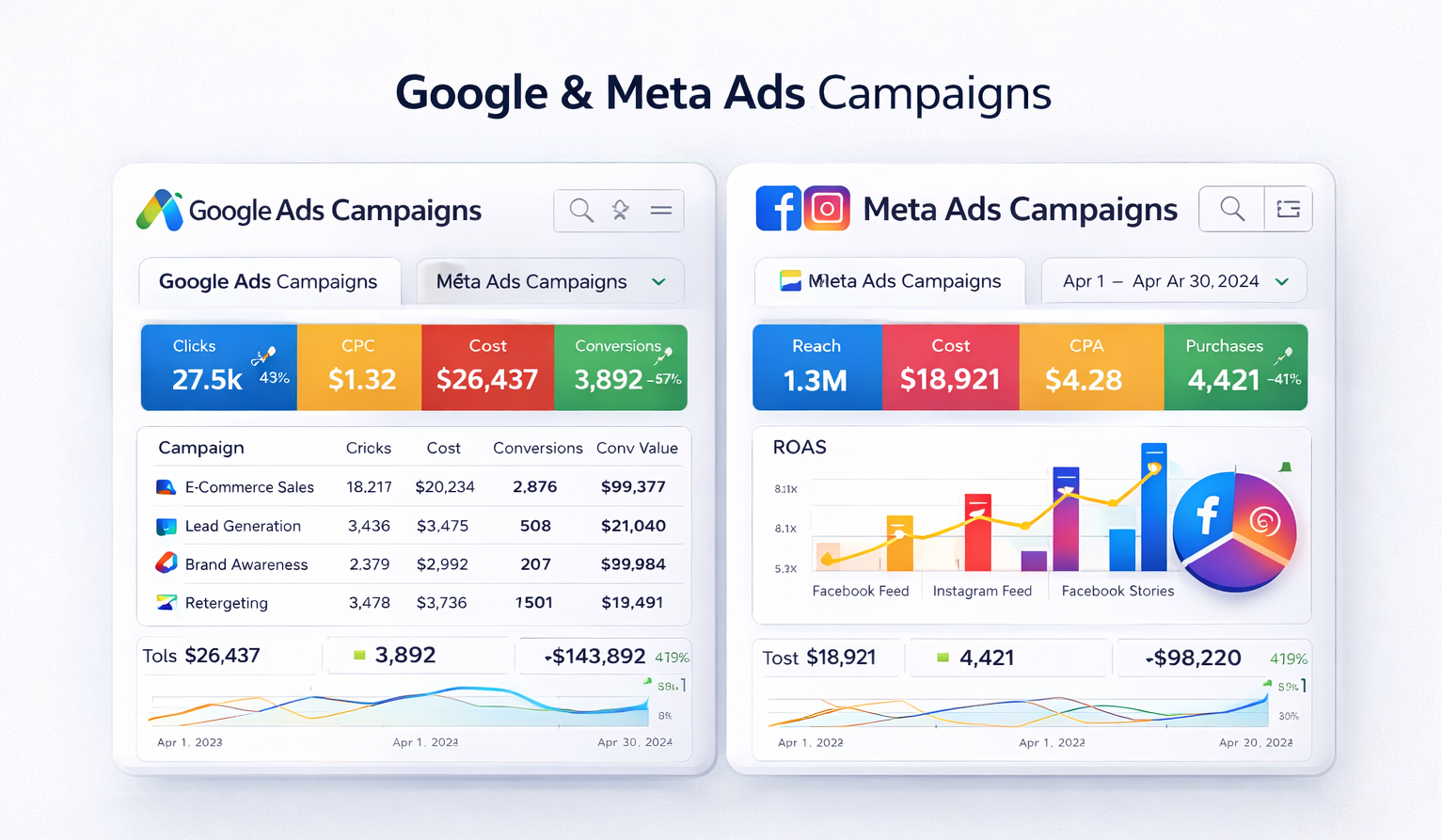 Google & Meta Ads management focused on measurable growth, not vanity metrics.